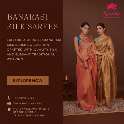 Raavika brings tradition and style together with a stunning range of ethnic and spiritual collections. Discover elegant sarees from our Banarasi saree online shop in Kochi, stylish spiritual printed cotton kurtas for men, and beautiful handcrafted bags available for online shopping. Each product is carefully crafted, celebrating Indian craftsmanship, culture, and authenticity, making it perfect for gifting or adding a touch of tradition to your everyday look.