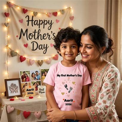 First Mother’s Day baby t-shirt, personalized baby t-shirt, Mother’s Day kids outfit, Babywish kids clothing, baby cotton t-shirt, personalized kids wear, Mother’s Day baby gift, custom baby name t-shirt, baby photoshoot outfit, newborn Mother’s Day dress, baby fashion India, kids printed t-shirt, unisex baby clothing, baby milestone outfit, Mother’s Day baby clothes