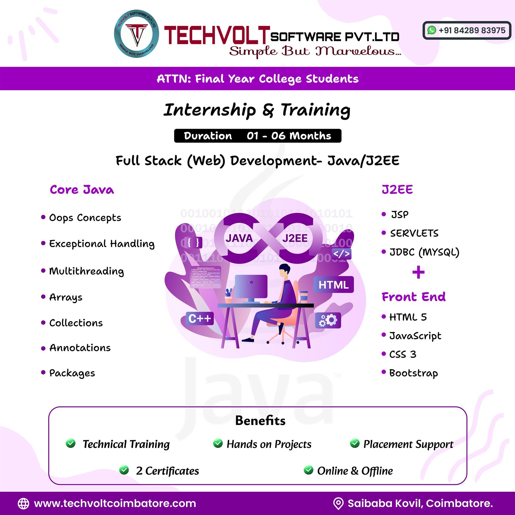 Techvolt Software offers students final year internship/Winter internship in Coimbatore in the field of Full Stack Development, Web Development, Data Science, Machine Learning, Embedded Systems, Internet of Things, Graphic Designing