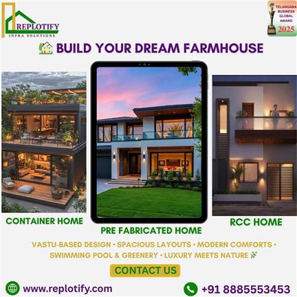 Replotify offers professional, customized, and end-to-end farmhouse construction services designed to match your lifestyle, vision, and investment goals. We specialize in building modern, premium, and eco-friendly farmhouses that provide comfort, privacy, and long-term value. Our expert team focuses on creating nature-integrated living spaces that ensure luxury, relaxation, and sustainability away from busy city life. Whether you are planning a weekend residence, family retreat, retirement home, holiday stay, nature-based lifestyle property, investment farmhouse, or agro-tourism villa, Replotify delivers high-quality design, engineering, and execution with complete transparency and professional project management.