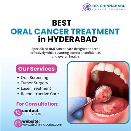Discover the best oral cancer treatment in Hyderabad with Dr. Chinnababu, a pioneer in minimally invasive surgeries for tongue, cheek, and throat cancers. His advanced techniques like transoral robotic surgery (TORS) and laser resections preserve function while achieving high cure rates. Comprehensive care includes biopsy diagnostics, chemo-radiation combos, and reconstructive flaps. Patients call 9000126776 for personalized plans tackling tobacco-related cases. Trusted for quick recoveries and speech therapy integration, Dr. Chinnababu delivers Hyderabad's top oral cancer treatment—your path to remission starts here.