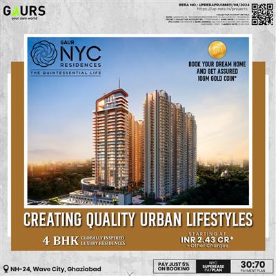 Deal your perfect home in the best location to own a dream home in Sector 3, Wave City, NH24, Ghaziabad, connected to Shaheed Asthal Metro Station, and Hindon Airport via the Delhi-Meerut Expressway and the national highway NH24/NH09. I am talking about Gaur NYC Residences, which offers a 4 BHK Apartment in Delhi NCR. You can buy this or invest in the prosperity of your family. The price is 2.43 Cr* only! read for more information Visit to www.propshop.org.in/gaur-nyc-residences