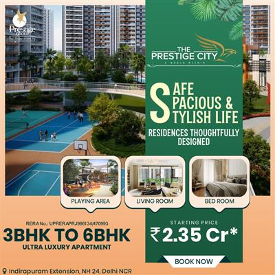 Live life as simply as The Prestige City that creates a new way of luxury lifestyle, your way! The Prestige City by Prestige Group offers 3/4/5/6bhk spacious and ultra-modern apartments, penthouses, and duplexes loaded with awe-inspiring amenities to enjoy your every moment together. This project of a 3 BHK apartment in Indirapuram is under rapid construction on the bank of NH24 and the Delhi-Meerut Expressway, which offers a quick link to the metro station and airport. The Prestige City NH 24 Ghaziabad could be the next stop for a new address, only at rupee 2.35 Cr*! read for more information Visit to www.propshop.or -g.in/the-prestige-city