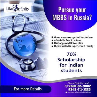 "For aspiring doctors seeking quality education beyond borders, Lilac Infinity offers Study MBBS in Russia a pathway to a world-class medical education is accessible and affordable. Studying MBBS in Russia is an increasingly popular option for international students, especially from India, due to its blend of affordability, quality education. Lilac Infinity is trained leading overseas education admission office that empowers aspiring medical students to study MBBS at Russia’s most reputed institutions, including Crimea State Medical University and Kursk State Medical University. These universities offer English-medium programs accredited by WHO , UNESCO and other international organizations.Russian medical universities blends strong theoretical foundations with hands-on clinical training, preparing international students for real-world medical practice. The major advantage of study MBBS in Russia is the cost-effective fee structure and low living expenses compared to many Western countries. Our young expert counselors' guidance makes the admission process smooth and hassle-free. Known for its strong legacy in healthcare education and the Healthcare Placement Program, Universities in Russia are equipped with modern laboratories and advanced medical facilities, ensuring real-time medical practice and scholarship opportunities for eligible international students. With Lilac Infinity Study MBBS in Russia, guiding the complete MBBS journey and becoming a secure and rewarding path for aspiring doctors and with years of expertise in placing thousands of students into Russian medical universities, Lilac Infinity is a trained leading overseas education admission office, has become a trusted partner in guiding future doctors toward successful international medical careers. Our young expert counsellors are helping you choose the right university and navigate every stage—from application to arrival.