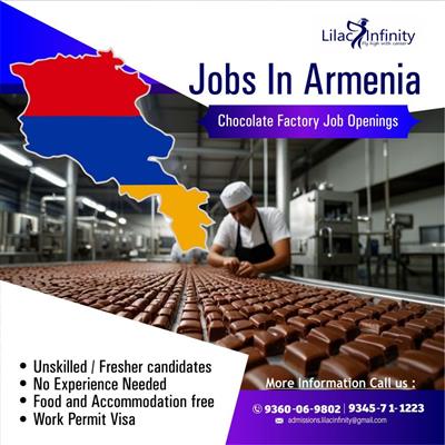 "Lilac Infinity delivers unskilled job opportunities in Armenia for candidates seeking overseas employment with assured benefits and legal work authorization. In Armenia’s growing food production sector, Lilac Infinity is a trained leading overseas education admission office connects you with reputed chocolate factories offering stable employment, safe working environments, and long-term career prospects. Candidates receive free food and free accommodation provided by the factories, which reduces living expenses and saves more of their earnings. Through Lilac Infinity is a trained leading admission office, employees can travel legally with a work permit visa, ensuring compliance with Armenian labour and immigration laws. Our young expert counselors assist you with documentation, work permit processing, visa application, and pre-departure guidance. Armenia’s growing chocolate manufacturing sector has created regular openings for roles such as chocolate packing staff, production assistants, machine operator helpers, inventory assistants, and quality inspection support. Lilac Infinity offers an Unskilled job opportunity in Armenia, ensuring a streamlined recruitment process with a processing time of within one month. This allows candidates to move abroad faster with legal work permits and guaranteed placement in Armenia’s chocolate factories.Visit our website: https://www.lilacinfinity.com/