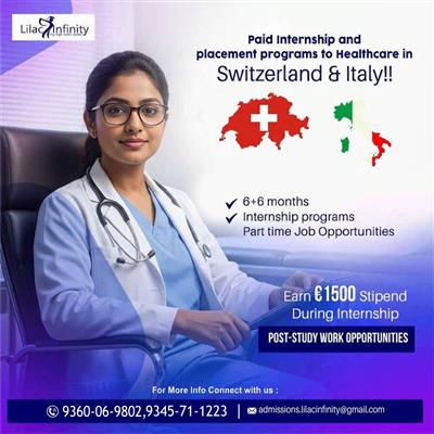 "Looking for a study abroad destination that balances academic excellence with an inspiring lifestyle? European region offers an inspiring foundation for international education, and the quality of life makes this destination particularly attractive for students planning a long-term international future through Lilac Infinity study abroad program offeres paid internship opportunities. Switzerland and Italy a preferred study destinations, offering structured education systems supported by global standards, and Lilac Infinity a trained leading admission office provides comprehensive Hotel and Hospitality Management programs that combine academic excellence, Paid internships and Healthcare Placement programs with real-world industry exposure. A key highlight of Hotel and Hospitality Management programs is the 6+6 internship program, In hospitality management, students gain hands-on experience in international hospitality brands, while healthcare-focused students benefit from real-time medical practice across European healthcare systems.Through Lilac Infinity Study Abroad Program, students receive comprehensive guidance from our young experts at every stage, from program selection and admissions to visa support and career planning. Known for its modern infrastructure and safe living conditions, Switzerland and Italy are the leading European destinations for international students, known for their internationally recognised universities.