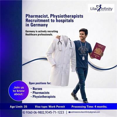 "Germany has emerged as a leading destination for international migrants. International nurses can now enter the German healthcare system, and Germany is actively recruiting nurses and healthcare professionals, including Physiotherapists. A key requirement for enrollment in this program is German language proficiency at the B1 level. This ensures that registered nurses can communicate effectively with patients, colleagues, and doctors, supporting safe patient care in the German healthcare system. Our specialized course equips qualified nurses, pharmacists, and physiotherapists to transition smoothly into German hospital placement. Through Lilac Infinity, expertly curated German placement programs provide real-time medical practice and modern equipment-based clinical practice. The smooth visa process and the availability of a work permit within 4 months make it easier to fly abroad and begin your migration journey. Eventually, healthcare professionals in Germany can secure permanent residency, allowing them to reunite with their family. Contact Lilac Infinity Kollam today, our young expert counsellors provide hassle-free guidance.