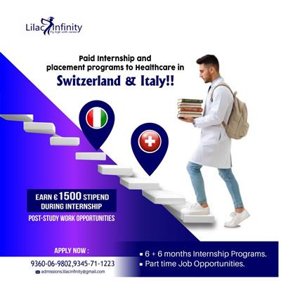 "Looking for a study abroad destination that balances academic excellence with an inspiring lifestyle? European region offers an inspiring foundation for international education, and the quality of life makes this destination particularly attractive for students planning a long-term international future through Lilac Infinity study abroad program offeres paid internship opportunities. Switzerland and Italy a preferred study destinations, offering structured education systems supported by global standards, and Lilac Infinity a trained leading admission office provides comprehensive Hotel and Hospitality Management programs that combine academic excellence, Paid internships and Healthcare Placement programs with real-world industry exposure. A key highlight of Hotel and Hospitality Management programs is the 6+6 internship program, In hospitality management, students gain hands-on experience in international hospitality brands, while healthcare-focused students benefit from real-time medical practice across European healthcare systems.Through Lilac Infinity Study Abroad Program, students receive comprehensive guidance from our young experts at every stage, from program selection and admissions to visa support and career planning. Known for its modern infrastructure and safe living conditions, Switzerland and Italy are the leading European destinations for international students, known for their internationally recognised universities.