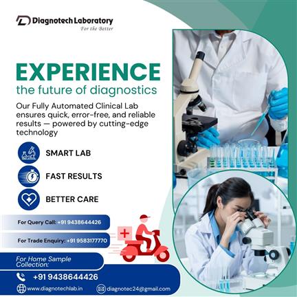 Patients trust Diagnotech Laboratory for its commitment to hygiene, transparency, and excellent patient support. The centre also provides home sample collection for added convenience — making it easy for you to get tested without leaving your home.