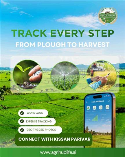 Kisaan Parivar introduces AgriHub Life, a smart digital farming solution that helps landowners, NRIs, and urban professionals track every stage of cultivation—from ploughing to harvesting. With a powerful farm dashboard, users can monitor work logs, expense tracking, geo-tagged photos, and real-time crop updates directly from their mobile or laptop.