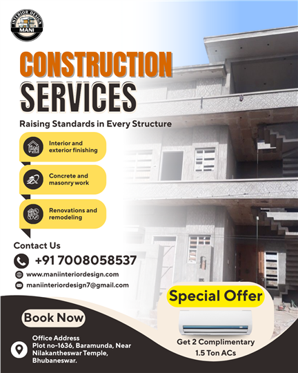 Looking for a reliable Residential Building Construction Contractor in Bhubaneswar? maniinteriordesign is a trusted name in India, offering professional and high-quality residential construction services. With years of experience, the team understands the importance of building safe, strong, and comfortable homes.